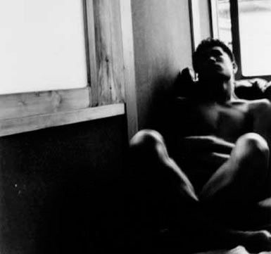 In the Nomura’s exhibition “naked time” in Poland, 2006, they described her photography as “creating a story about life and time”, emphasizing “man’s helplessness towards the secret of life and time”. The men are framed in such way, “deprived of daily attributes “, revealing them “to be much lonelier in longing for something undefined, something that would enable them a real fulfilment”. Given this description it would this be more correct to describe Nomura’s photography as a fragile and intimate framing of men’s unfulfilled desire. This longing, often framed using “the looking”, can, depending on the specific subjective constitution of the one who’s looking at the pictures, take on an erotic value and thus become an erotic encounter.