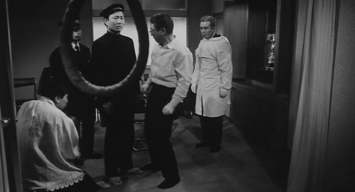 The two most important themes in Death by Hanging are ‘responsibility’ and ‘subjectivity’. The theme of responsibility is already evoked in the very beginning of the narrative by contrasting the anxious resistance of R with the emotionless faces of the state. By revealing the officers of the state as (seemingly) mere passive instruments of the state, Oshima powerfully underlines that, for the criminal murders of the state, no one has to take responsibility for the murder as such. While the question of responsibility is brought into play by the failure of R’s capital punishment, this responsibility does not concern the act of murder or the fact that someone has to assume the position of murderer. The responsibility called into play concerns the procedure of capital punishment as such – i.e. the fact that someone is responsible for the flawless execution of the procedure.