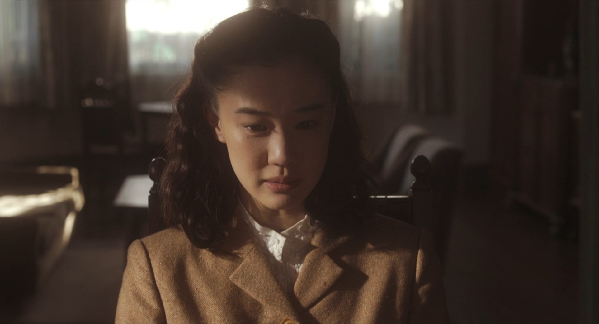 One cinematographical element that needs to be mentioned is the lightning design. The lightning design of Wife Of A Spy stands out due to its naturalism and its washed-out colour-palette (Lightning-note 1). Even though this approach to lightning and colour gives the narrative a certain foreboding atmosphere – an atmosphere that evokes the looming threat of the paranoiac Fascist Japanese Other our subjects are (already) subjected to, it also causes many scenes to be characterized by a play of vague shadows with little to no subdued highlights. Kurosawa’s visual choice will divide spectators. Some might feel that the lightning-design gives the film, at times, a tv production aesthetic while others will experience this murky darkness as a visual symbol for the dark and ethically murky times under Japanese fascism – the play of power happens, par excellence, within the shadows.