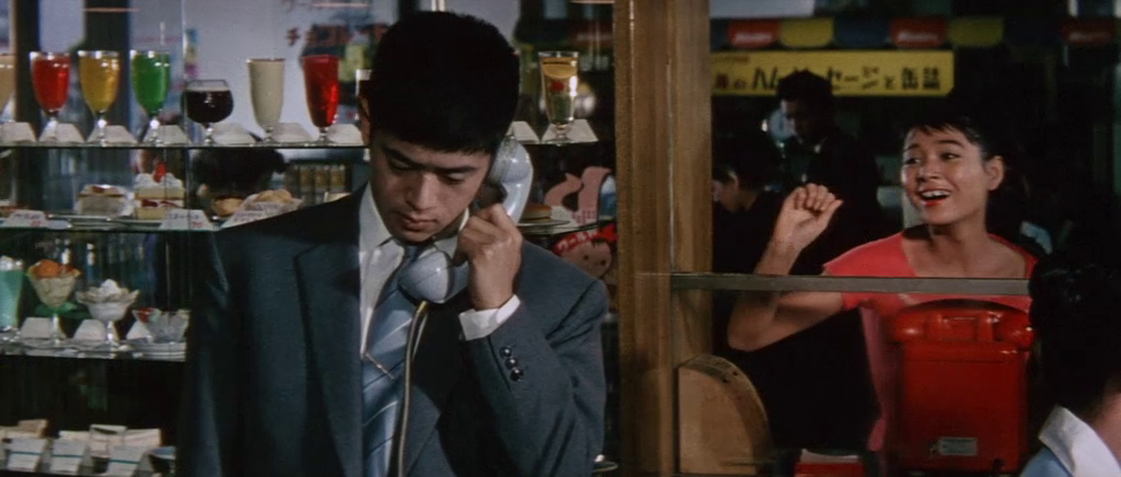 The composition of Giants and Toys stands out due its cinematographic dynamism and its pleasing flow. As can be expected, Masamura also utilize his composition to strengthen his thematical explorations. To underline the mental state of the war-like corporate rivalry and the subjective effects of the unquenchable thirst to make the consumer consume, Masamura applies more faced-paced composed sequences and smartly utilizes visual repetitions. Moreover, these techniques also enable the audience to understand that Goda, once full of desire to make the public consume, is reduced to merely a body animated and consumed by the corporate command he is subjected to.