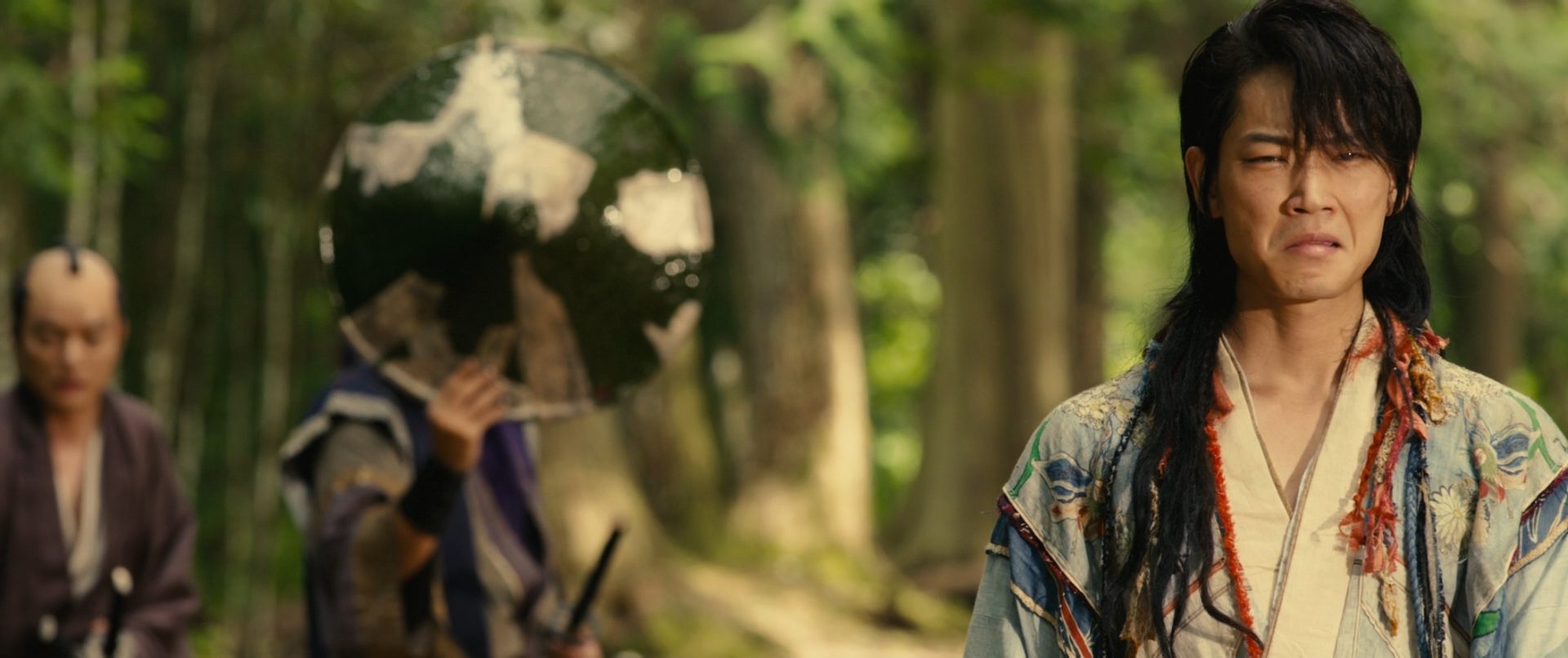 Punk Samurai Slash Down offers the spectator a wild lighthearted ride with many unexpected turns and twists and a lot of speech-related comedy, character-comedy, and elegantly delivered visual gags. Sogo’s narrative pleasantly mixes supernatural-elements, hordes of mindless followers surviving on the enjoyment of belly-shaking, crazy zombie-like warfare, and a form of divine intervention in the form of a monkey called Nobuzu Deusu (Masatoshi Nagase). Moreover, this crazy mix is further spiced up with a dash of romance and romantic conflict, and some injections of heartfelt drama. Yet, Punk Samurai Slash Down does suffer from having a bit too much fat – some scenes go on for too long and ask for more tight editing. With more thoughtful trimming, Sogo’s narrative would have been a snappier and more energetic experience without losing any of its comical charm or its craziness.