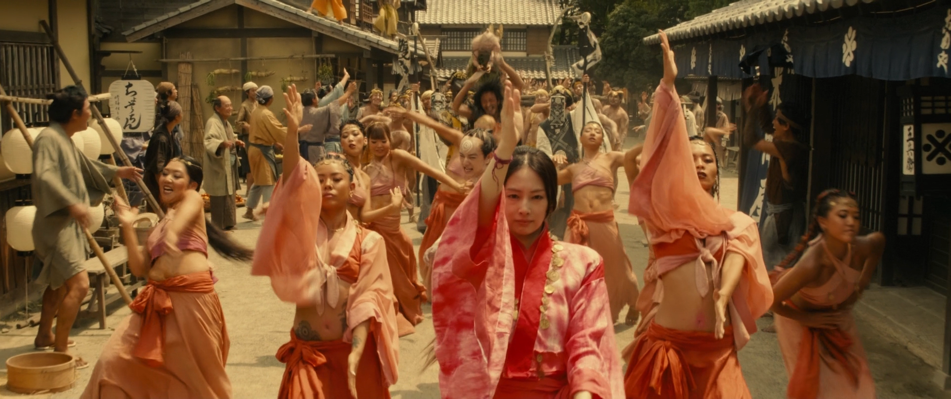 Unsurprisingly, the cult grows quickly, causing violent uprises of joyful belly-shaking and rebellious acts of pleasure that radically complicate the day-to-day rhythm of the local society. Moreover, the attack of the ‘foolish’ Harafuri followers on the establishment, defiling places of power (e.g. graffiti on samurai castle), has no other function than confronting the lord with the castration he refuses to acknowledge. Yet, the lord, so poisoned by his hierarchical position, remains blind to the miserable truth of his clan. And Kake’s supposedly ‘superhuman’ fighting skills appear to be radically insufficient to deal with the coming conflict all by himself. Or are his skills not as inadequate as the spectator has come to assume?
