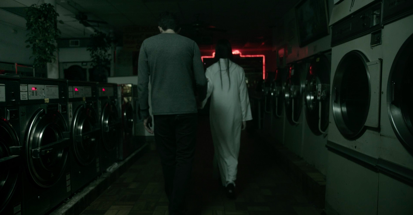 Laundromat on the Corner is a short that utilizes horror-motives to create a strange romance narrative. Yet, more than being a straight-forward romance, Ijichi’s shows how the subject’s thirst for romance is often motivated from a schism between the subject and his societal environment. In other words, Ijichi stages, with his short, that some subjects are so convinced that reality is against them that they readily throw themselves in whatever hope they encounter, a hope of flesh and bones or from other(worldly) material.