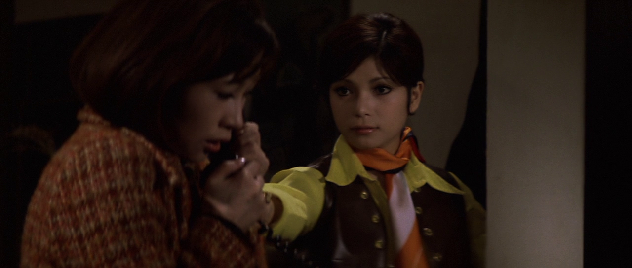 The composition of Lake of Dracula offers a pleasing and thoughtful blend between static and dynamic moments. Dynamic elements, like zoom-ins, are carefully used to dramatize certain interactions or to heighten the intrusive character of certain flashbacks. And Yamamoto takes the time to ensure his fixed moments are aesthetically pleasing, either by exploiting colour-contrasts or by ensuring via a geometrical play that shot-compositions have a satisfying visual tension.
