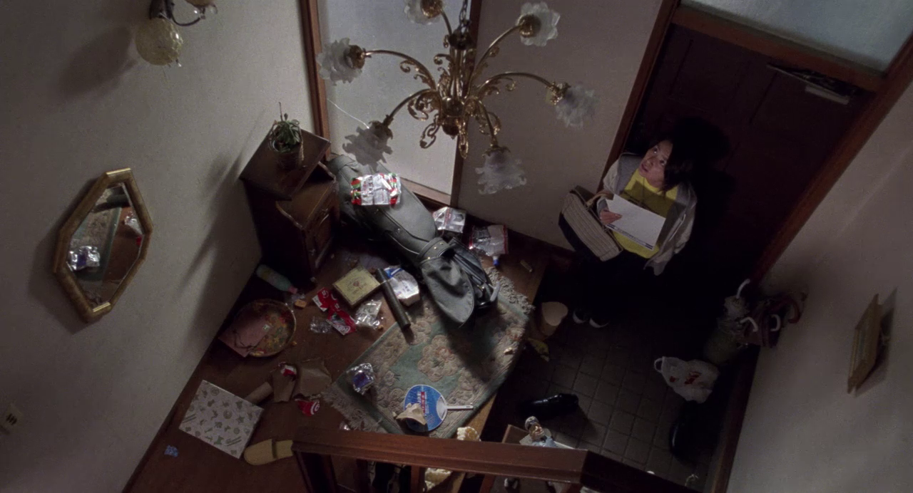 Lighting-note 1: The lighting-design of Ju-On: The Grudge is fantastic. Shimizu refuses to cheaply exploit darkness to make the scares and horror stronger. With the natural lighting-design, both the shadowy parts and the well-lit parts can become a site where an image of horror can appear