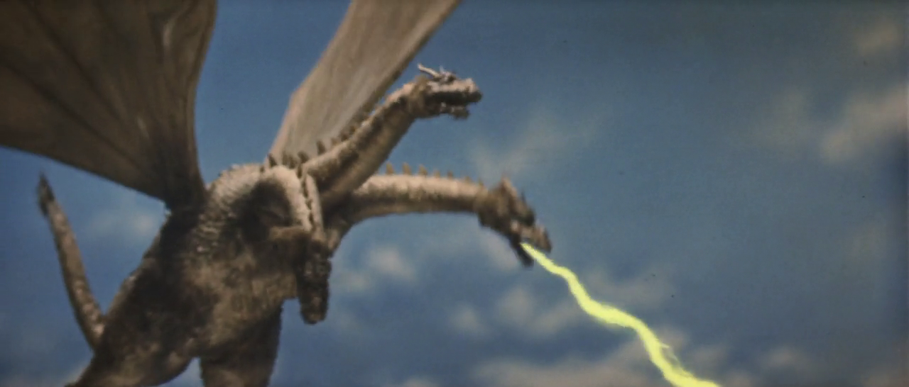 Even though the monsters are decontextualized by the narrative structure, i.e. the shift away from depicting internal societal tensions via conflicts between monstrous beings, we can still rely on what these beings represented in previous narratives to try and situate ourselves within Ghidorah, The Three Headed Monster (1964).