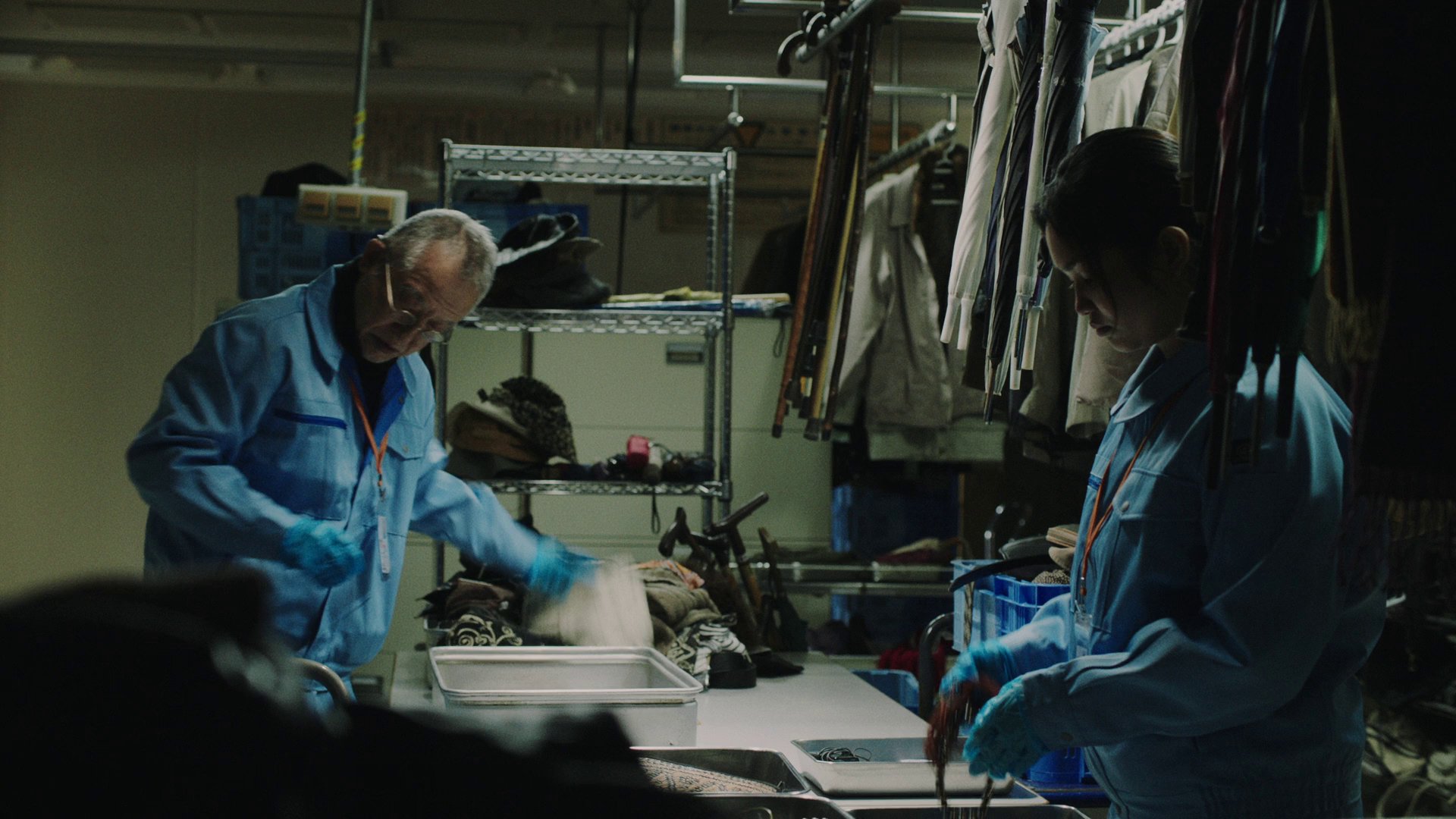 Maria’s choice to work at a mass crematorium allows the spectator to grasp how much the elderly subject is dehumanized by the economic discourse that lingers within the societal fabric and guides the subject’s thinking. One of Maria’s colleagues puts it rather crudely: You’re useful, no trash. The ultimate point he makes is not that once people die, they become useless trash, but that, from an economical perspective, the elderly subject is already dead before his/her cremation. He/she is but a sack of organs and blood without a societal function. The way the bodies of the elderly are disposed off is not merely impersonal – an assembly line-like mass cremation – but an event that is radically cut off from the symbolic. The body does not receive any funerary celebration that would inscribe its loss into symbolic, but is disposed as waste outside the societal eye and erased from the symbolic. Hiromu glances in his own way at the horrific inhuman bureaucratic truth – elderly people are societal waste – that underpins the plan 75 program. Is it not this glance that, as a catalyst, determines his subsequent actions?