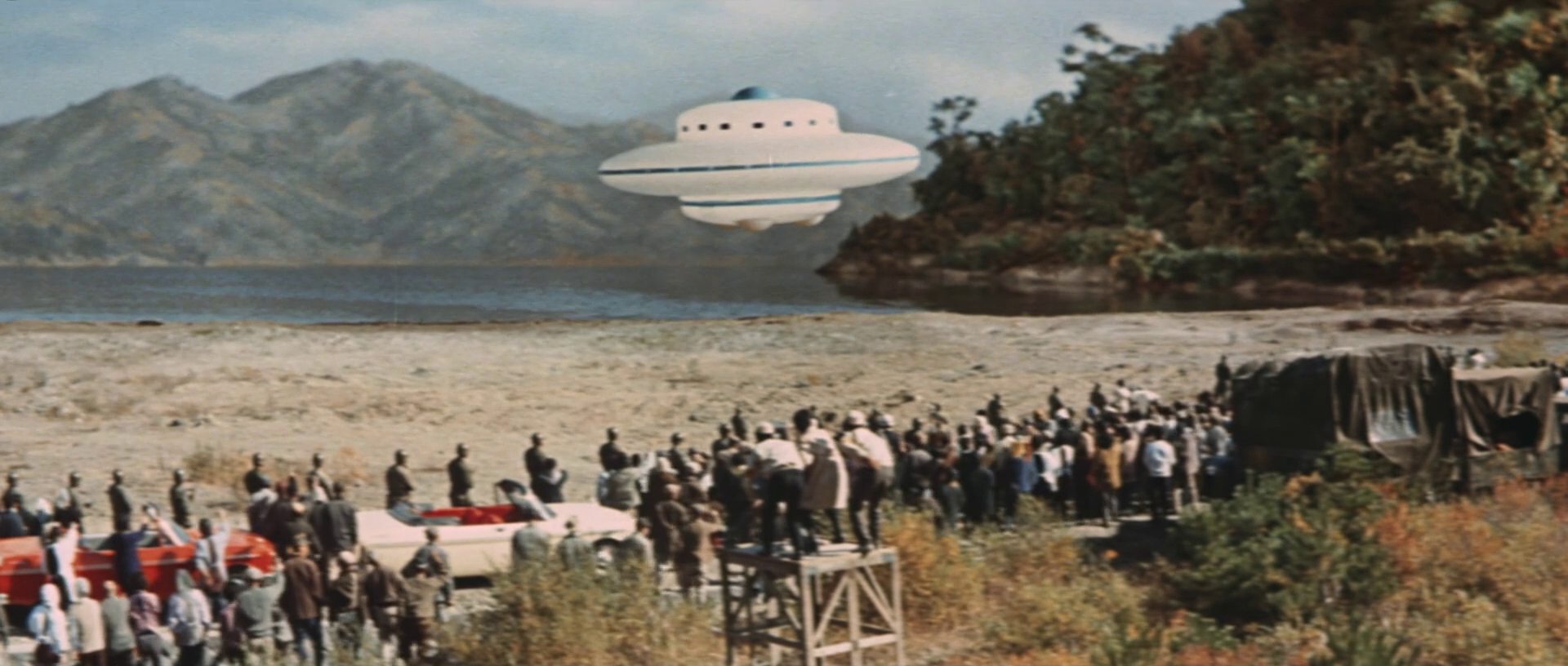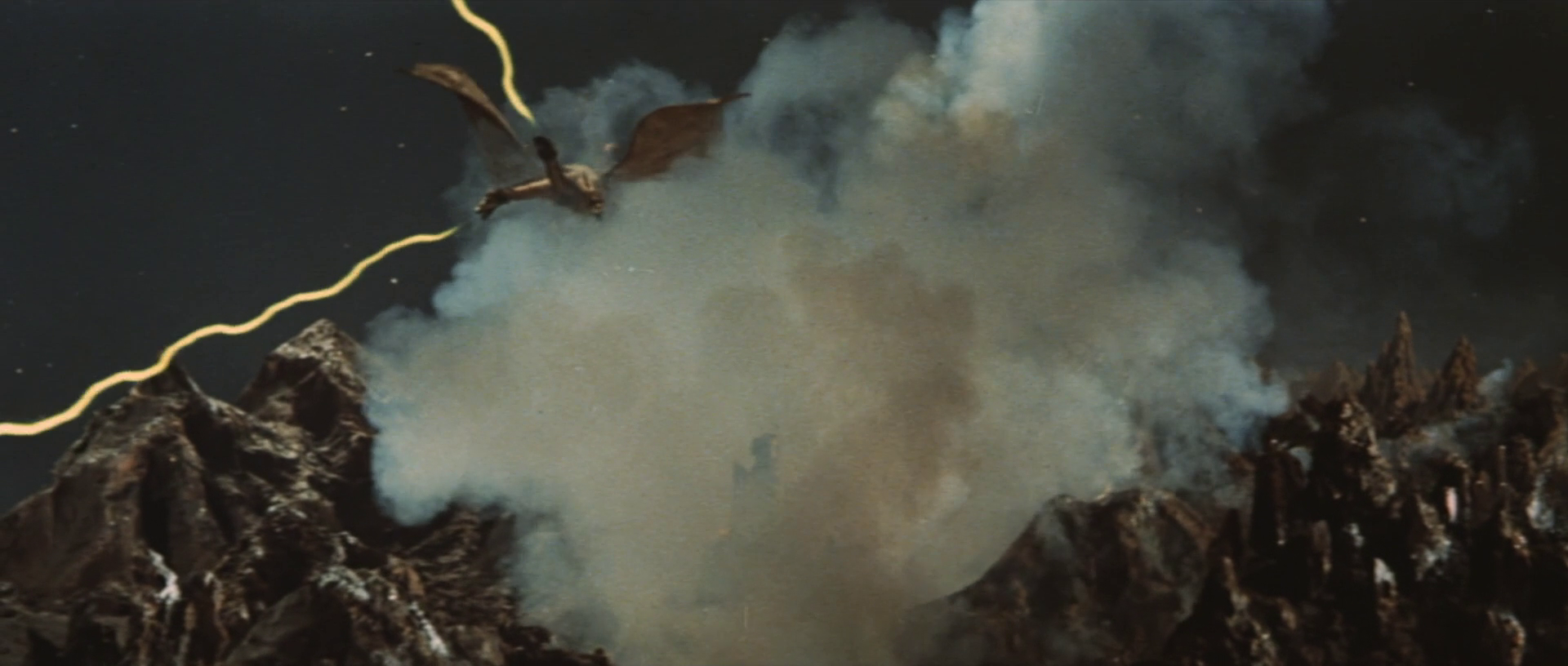 Honda spends a little bit more time to show off the beauty of the intricate nature of some of the miniature models (e.g. the space-rocket, the ufo-ships, …etc) and set-designs (e.g. the living quarters of the Xiliens). Yet, this emphasis cannot hide the less elaborate nature of the miniature city landscapes, the messy framing of their destruction, and the sneaky use of footage shot for films like Rodan (1956), Mothra (1961), and Ghidorah, the Three-Headed Monster (1964).