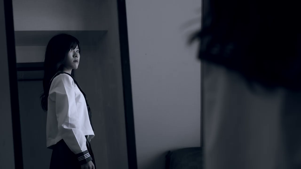 The composition of Glitch is highly dynamic. Due to its initial reliance on POV shots, the spectator is put in the shoes of the main protagonist. By forcing such identification, by letting the spectator’s gaze coincide with the subjective gaze of the main character, Shunsuke Ishida makes the various visual horror-elements (e.g. the sudden movement of desks, …etc.) more effective. With the dynamic action-sequence – the sixth minutes-long finale not framed in a POV perspective, Ishida proves that he has the skill to stage a fighting-choreography in an engaging and exhilarating way.