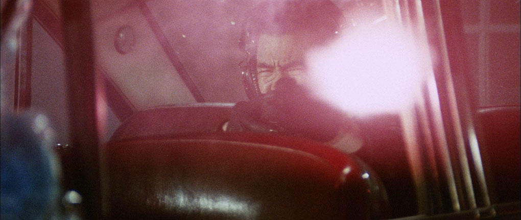 Gosha’s composition stands out due to its stylish nature. The stylishness is evident in the composition’s engaging visual rhythm that, at times, comes to celebrate the beauty of corporal movement and also in the many visually pleasing shot-compositions – compositions created by elegantly exploiting geometry, but also by smartly utilizing colour-contrasts to emphasize the already present compositional tension (Cine-note 1, cine-note 2, Cine-note 3).