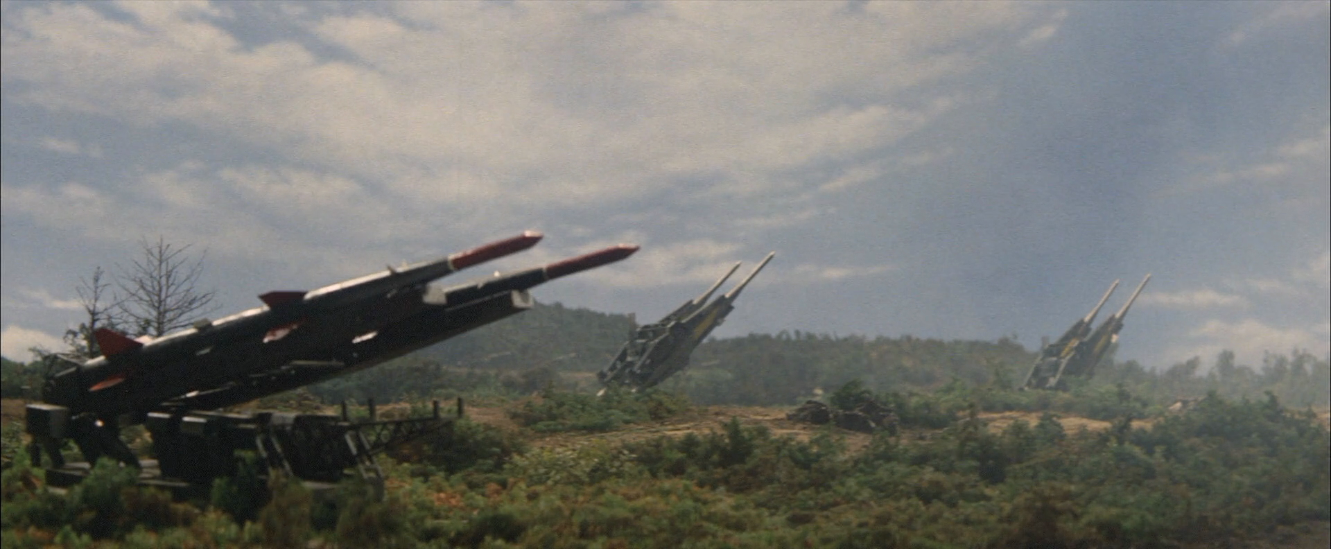 Cine-note 1: There are many other pleasant effects within the composition, likethe departure of the rocket from Iwo Jima’s space port, the landing of the space-rocket in the crater on Monster Island, the deployment of the army to combat the kaiju and its traversal to the Izu peninsula, and Godzilla disturbing the search for something otherworldly in the forests near mount Fuji.