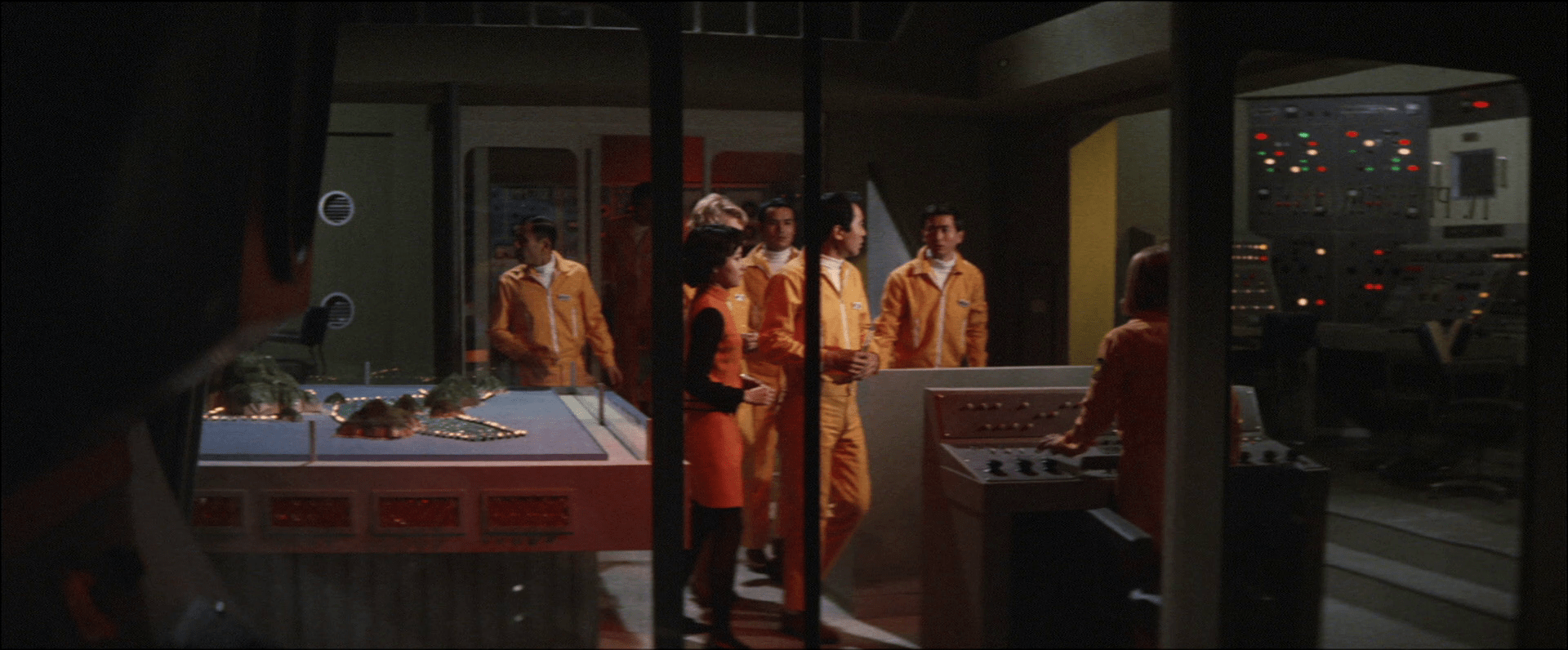 Near the Bonin islands, an undersea farm is erected to cultivate a variety of fish for the kaiju inhabiting the newly created kaiju island. The farm as well as the defences to keep the kaiju on the island are automatically regulated and monitored by a control centre deep under the island. Of course, the place is also utilized as a base to conduct scientific research on these monstrous beings. Kyoko Manabe (Yukiko Kobayashi), just arrived at this underground facility, is the newest addition to the team of researchers.