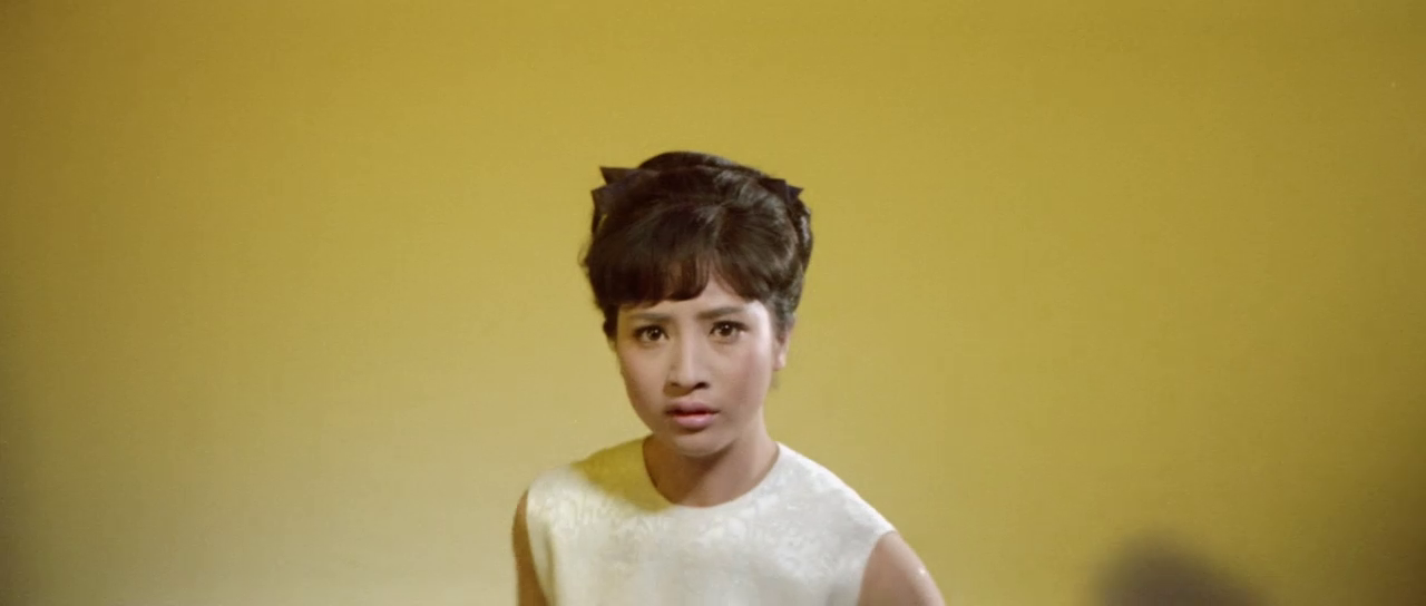 What gives Hasebe’s Black Tight Killers, a colourful narrative collection of gangster and spy film tropes, its power to engage the spectator is the composition and its stylish jazzy musical accompaniment. It is evident from every frame, from every image, that Hasebe seeks to satisfy the spectator’s gaze and dazzle him with ‘beauty’. He does so in a direct way with elegant transitions, striking colour-contrasts, refreshing shot-compositions, and pop-art-like colour-shifts and, in an indirect way, by utilizing dynamism and compositions to allow the spectator to savour the visual frame (i.e. the elegant costumes, the lush set-designs, the female body, … etc) (Cine-note 1).