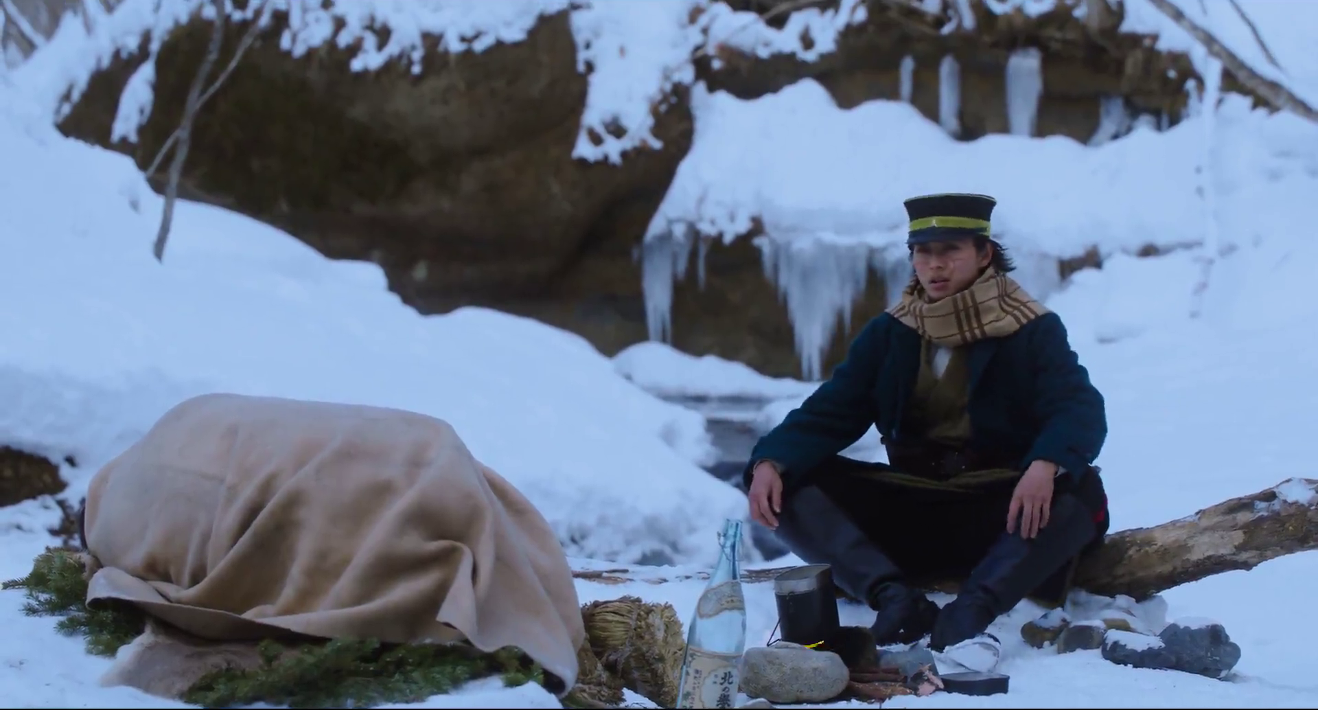 Like most live-action adaptations, Golden Kamuy is sprinkled with moments of light-heartedness. While some of these comical turns successfully offer the spectator a light-hearted intermezzo – a pleasant pause before the tension rises and the action burst forth again, others do not land well. In our view, the sole moments of comical repose that work well are those that leverage the cultural differences between Sugimoto and Asirpa (Anna Yamada), the Otherness they embody for the other.