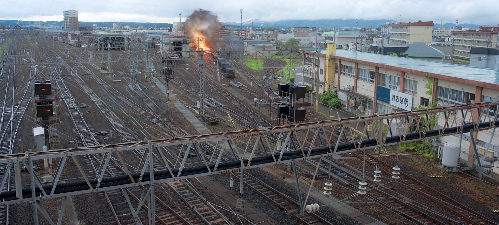 The narrative commences, unsurprisingly, in a very similar way as Sato’s The Bullet Train (1975). After the departure of Hayabusa number 60 bound for Tokyo, a disconcerting phone call arrives at the call centre of the East Japan Railway Company Headquarters building. The distorted voice reveals that a bomb is planted on the shinkansen and that it will go off if the train’s speed drops below one hundred kilometres. To prove the legitimacy of the threat, the terrorist detonates a bomb on a nearby freight train.