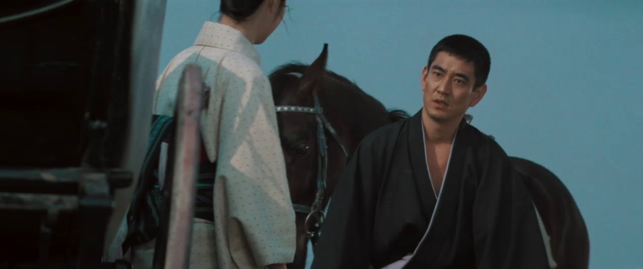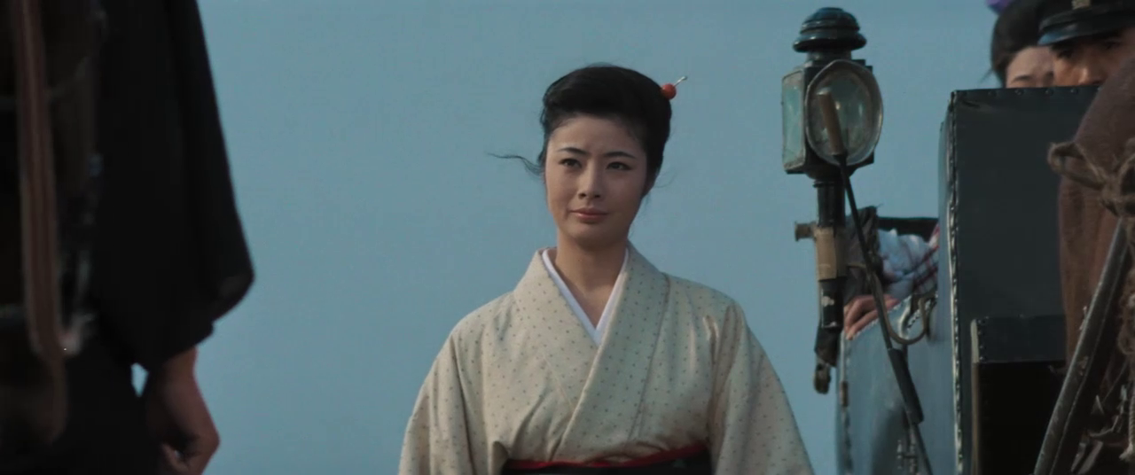 The intra-subjective version of the conflict is represented within the narrative by Oryu. Yet, rather than exposing her subjective split like in Red Peony Gambler: Gambler’s Obligation, Tai Kato shows how a subject can avoid the confrontation with his own psychic tear. Oryu decides to help Jiro not only because her radical inscription in the moral calculus of the Other demands it, but also on account of seeing her own thwarted female past, i.e. the logic of lack and desire, reflected in Jiro’s radical longing for Yaeko, inhis self-sacrificing love and his desperate beautiful sincerity. However, Oryu does not act because she has projected her own lack onto Jiro (ninjo), but because she seeks, through her radical adherence to the a-subjective moral prescriptions of the Other (giri), to keep her subjective split in a repressed state. She chivalrously flees into the demands of the moral code so that the unwanted reflection of her own repressed lack and desire for love cannot destabilize her.